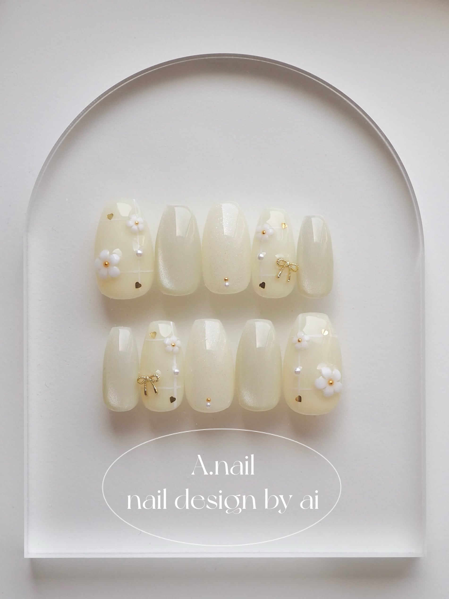 ◎ Even with the same design, nail sizes and shapes differ. Each nail tip is uniquely crafted, with variations in heart sizes, shell placements, and other details, creating a custom and personalized aesthetic. Enjoy a one-of-a-kind nail set made just for you! ♡゙